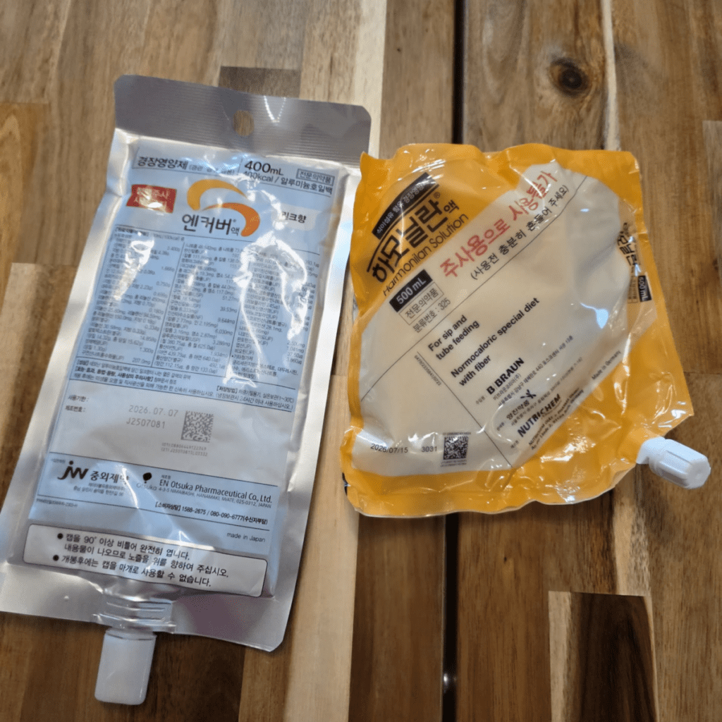 대학병원에서 처방받을 수 있는 경장영양제는 하모닐란, 엔커버 정도다. (뉴케어란 제품도 있는데 의사들이 그리 선호하지 않는 듯 하다)